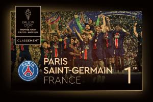 體育資訊9月23日訊 金球獎頒獎典禮,巴黎圣日耳曼當(dāng)選最佳男足俱樂部。