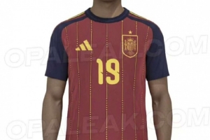 西班牙隊新款主場球衣將以深紅色為主體,搭配深海軍藍色的袖子,并在肩部飾有紅黃紅三道條紋。球衣上還大面積加入了細密的黃色豎條紋,以及點狀細節(jié)裝飾。