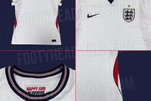 英格蘭隊新款主場球衣采用了經典的白色底色,搭配細膩的提花圖案、肩部的海軍藍鑲邊以及兩側帶有海軍藍邊緣的紅色插片。球衣領口內側印有“HAPPY AND GLORIOUS(英國國歌《天佑女王》里的歌詞,譯為孚民望,心歡暢)”的標語,而隊徽上方的一顆金色星星則紀念了1966年世界杯冠軍。