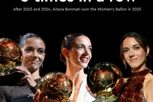 邦馬蒂成為女足金球獎歷史上最成功的球員,連續(xù)三次奪得金球獎,加入了克魯伊夫、普拉蒂尼和范巴斯滕等男足傳奇的行列。盡管她在個人表現(xiàn)上取得了巨大成功,但巴薩女足在歐冠決賽中失利以及西班牙女足國家隊在歐洲杯決賽中的失敗讓她感到遺憾。不過,她的出色表現(xiàn)使她成為了這兩項賽事的最佳球員。