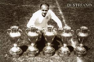1953年9月23日,迪斯蒂法諾在對(duì)陣南錫的熱身賽中首次代表皇馬出場(chǎng),他頭球攻入個(gè)人皇馬生涯首球。迪斯蒂法諾于1953年-1964年效力皇馬,在396場(chǎng)正式比賽中攻入308球,這位史上最出色球員帶隊(duì)獲得歐冠五連冠,他還獲得1次洲際杯冠軍、2次拉丁杯冠軍、8次聯(lián)賽冠軍等榮譽(yù)。個(gè)人層面,迪斯蒂法諾獲得5次西甲金靴。