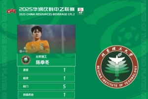體育資訊9月23日訊 官方消息,北京理工前鋒陳季冬獲得中乙第26輪最佳球員。