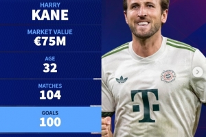 在拜仁4-0不萊梅的德甲聯(lián)賽中,凱恩完成梅開(kāi)二度,打進(jìn)自己在拜仁的第100球,同時(shí)也躋身為單一俱樂(lè)部最快打進(jìn)100球的前十球員行列。