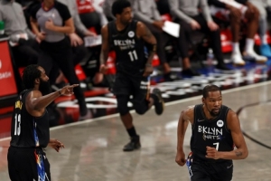 布魯克林籃網(wǎng)隊:在2020-21賽季,當杜蘭特和歐文健康回歸后,籃網(wǎng)隊通過交易得到了詹姆斯-哈登,組成了一個進攻火力強大的三巨頭。然而,由于傷病問題,他們在常規(guī)賽中只一起打了8場比賽。