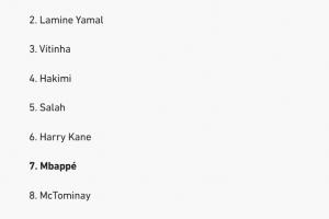 體育資訊09月27日訊 隊(duì)報(bào)公布了2025年金球獎各國記者的投票詳情,其中韓國記者將前三順位選票投給了登貝萊、亞馬爾、維蒂尼亞,姆巴佩位列第7,佩德里未能進(jìn)入前10。