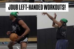 視頻中可見,杰倫威用左手完成了拍球、投籃和單挑等一系列訓(xùn)練內(nèi)容。
