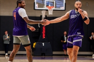 體育資訊9月28日訊 今天,太陽官方曬出了球隊訓(xùn)練照,其中新援杰倫-格林和狄龍亮相。