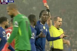 上輪英超,十人切爾西1-2不敵十人曼聯(lián),比賽開場(chǎng)5分鐘,切爾西門將桑切斯就因出擊放倒姆伯莫被紅牌罰下,當(dāng)時(shí)查洛巴對(duì)桑切斯“死亡凝視”。