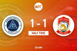 半場戰(zhàn)罷,新鵬城暫1-1西海岸。