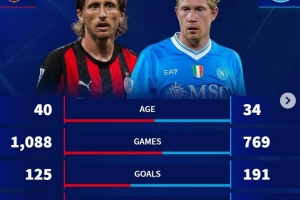體育資訊9月28日訊 本輪意甲AC米蘭將迎戰(zhàn)那不勒斯,德轉(zhuǎn)也對(duì)比兩隊(duì)中場(chǎng)莫德里奇與德布勞內(nèi)生涯數(shù)據(jù),具體如下: