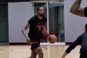 體育資訊9月29日訊 今日,火箭官方推特曬出一段前鋒杜蘭特的投籃訓(xùn)練視頻。