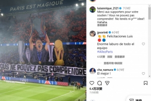 在社交媒體上,恩里克感謝了球迷們的支持,他寫道:感謝這個TIFO,這樣的場面令人難以忘懷。