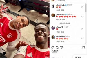 在社交媒體上,薩卡曬出更衣室照片慶祝來(lái)之不易的勝利,英格蘭邊鋒笑容燦爛顯然對(duì)賽果非常滿意。