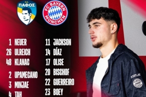 體育資訊9月29日訊 北京時(shí)間10月1日凌晨3:00,歐冠聯(lián)賽階段第2輪,拜仁將客戰(zhàn)帕福斯。今日,拜仁官方公布了本場比賽球隊(duì)大名單,凱恩領(lǐng)銜鋒線,比朔夫、博伊和格雷羅在列。
