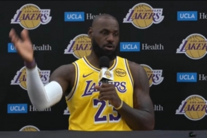 體育資訊9月30日訊 今日,湖人前鋒詹姆斯出席了新賽季的媒體日,并接受媒體采訪。