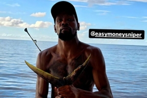 休賽期,杜蘭特在巴哈馬與新隊友共度時光,加入了一次由史蒂文-亞當(dāng)斯、杰肖恩-泰特和凱文-哈里斯組織的釣魚之旅。