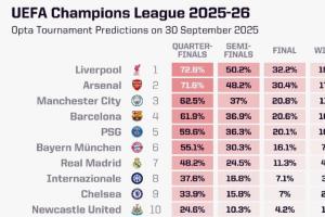 體育資訊09月30日訊 歐冠聯(lián)賽階段第二輪開賽在即,opta超級計(jì)算機(jī)更新了歐冠奪冠概率,其中利物浦位列榜首,阿森納、曼城分列二三。