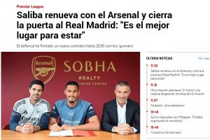 《阿斯報(bào)》的題目則是《官方:皇馬錯過薩利巴,阿森納官宣與法國中衛(wèi)續(xù)約至2030年,這名球員原本在皇馬的引援計(jì)劃中》