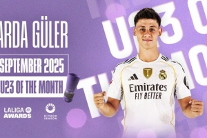 體育資訊9月30日訊 官方消息,居勒爾榮獲9月份西甲最佳U23球員獎,
