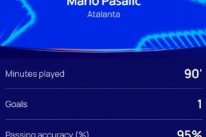本場比賽帕薩利奇打進(jìn)絕殺,全場跑動距離11.3km,傳球成功率95%,賽后他也當(dāng)選歐冠官方本場最佳球員。