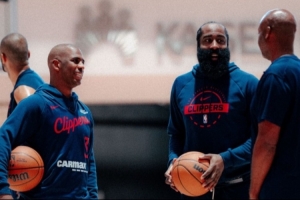 體育資訊10月1日訊 今天,快船官方曬出了球隊(duì)訓(xùn)練營(yíng)首日的照片。其中,哈登和保羅同框亮相。