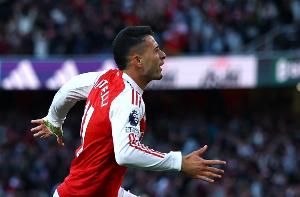 體育資訊10月2日訊 在本輪歐冠阿森納對陣奧林匹亞科斯的比賽中,馬丁內(nèi)利破門。