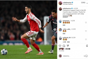 阿森納中場(chǎng)梅里諾社媒曬出比賽照片,并寫道:“歐冠重回北五區(qū),將3分留在倫敦?!?/p>