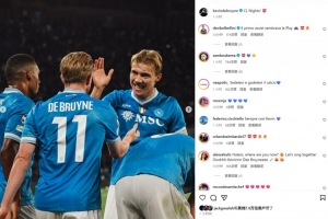 本場比賽德布勞內(nèi)兩度助攻霍伊倫破門,德布勞內(nèi)在社媒也曬出與霍伊倫的慶祝合影,配文寫道:“歐冠之夜!”