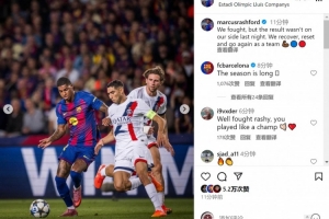 體育資訊10月2日訊 歐冠聯(lián)賽階段第二輪比賽,拉什福德助攻費蘭-托雷斯破門,巴薩主場1-2不敵巴黎。