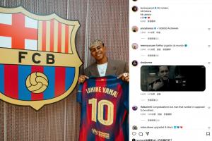 亞馬爾在社媒上曬出了自己手拿球衣的照片,隨后內(nèi)馬爾點贊。