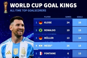 體育資訊10月4日訊 2026年世界杯用球“三重浪”發(fā)布,德國轉(zhuǎn)會市場列出了世界杯歷史射手榜,前十名中有兩名現(xiàn)役球員——梅西和姆巴佩。