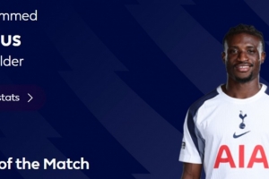 本場(chǎng)比賽熱刺球員庫(kù)杜斯發(fā)揮出色,打進(jìn)一球并且助攻一次,完成6次過(guò)人,賽后他也當(dāng)選英超官方球迷票選全場(chǎng)最佳球員。