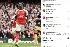 這是薩卡英超第200場里程碑之戰(zhàn),同時也是薩卡英超參與進球數(shù)第100個。賽后,薩卡更新社媒曬照紀念自己英超第200次出場,并配文:200場??