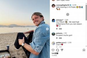 馬競中場加拉格爾在社交媒體上曬出了度假照,定位在法國的圣特羅佩,他還配文寫道:“圣特羅佩的寧靜夜晚??????????”。
