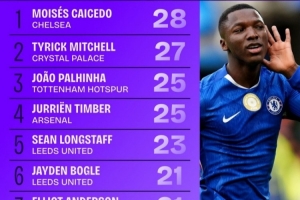 體育資訊10月7日訊 Squawka統(tǒng)計了本賽季英超搶斷榜前十,切爾西中場凱塞多28次位居第一,阿森納后衛(wèi)廷伯25次第四。