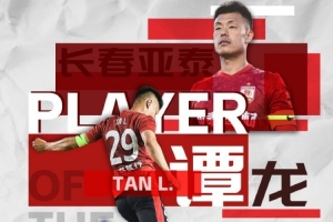 在6月的中超賽事中,長春亞泰取得了2勝3負(fù)的戰(zhàn)績,譚龍在與梅州客家、天津津門虎、北京國安和上海申花的比賽中各入1球,本階段共打入4球,兩次獲得比賽最佳球員。其中客場對陣梅州客家的比賽中,譚龍在第38分鐘打入超遠(yuǎn)吊射。