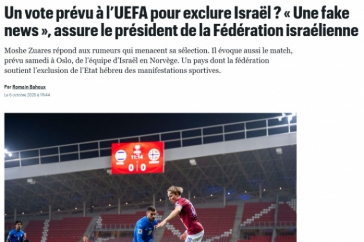 體育資訊10月07日訊 北京時(shí)間10月12日星期日,世預(yù)賽歐洲區(qū)小組賽I組第7輪,挪威坐鎮(zhèn)主場(chǎng)迎戰(zhàn)以色列。在這場(chǎng)比賽之前,針對(duì)有計(jì)劃在歐足聯(lián)進(jìn)行投票以排除以色列的報(bào)道,法國(guó)媒體巴黎人報(bào)表示,以色列足協(xié)主席做出了回應(yīng)稱這是假新聞。