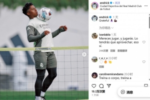 這種性格和沉穩(wěn)的態(tài)度,他也在社交媒體上展現(xiàn)了出來。當(dāng)許多隊友正在各自的國家隊中集訓(xùn)時,恩德里克留在馬德里訓(xùn)練。他在自己的Instagram賬號上發(fā)布了一組身穿皇馬訓(xùn)練服的照片,并配文:“感恩”