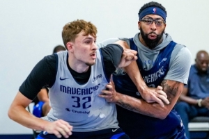 體育資訊10月8日訊 今天,獨行俠官方曬出了球隊訓(xùn)練照。其中,弗拉格和安東尼-戴維斯激烈卡位。