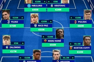中場:伊爾迪茲(尤文,7500萬歐元,+2500萬歐元)、尼科-帕斯(科莫,5500萬歐元,+2000萬歐元)、馬努-科內(nèi)(羅馬,5000萬歐元,+1000萬歐元)、普利西奇(米蘭,6000萬歐元,+1000萬歐元)