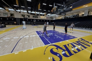 體育資訊10月10日訊 昨日,湖人記者Jovan Buha曬出湖人訓(xùn)練場(chǎng)的照片,并提到在三分線(xiàn)內(nèi)多了一條“兩分線(xiàn)”。