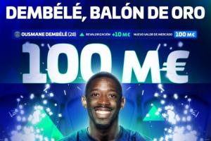 登貝萊上次身價(jià)達(dá)到1億歐元,還要追溯到2019年效力于巴薩時(shí)期。