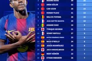 體育資訊10月10日訊 德國轉(zhuǎn)會市場盤點了2025年俱樂部層面各項賽事參與進球最多U21球員,亞馬爾39場32球居首,杜埃39場26球位居次席。