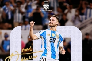 此役是麥卡利斯特為阿根廷隊(duì)出戰(zhàn)的第40場比賽,阿根廷隊(duì)官方社媒曬出海報(bào),對他表示祝賀。