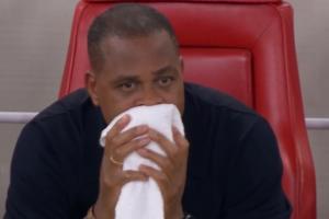 隨后,他就一直坐在教練席上不斷地用毛巾抹臉,眼眶泛紅,場上隊員和工作人員與馬寧發(fā)生沖突時他也只是看著。