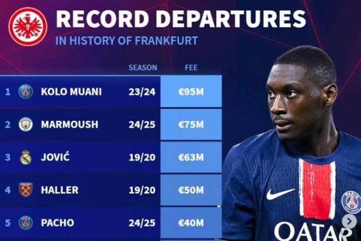 如果這筆轉(zhuǎn)會(huì)按照目前的進(jìn)展順利完成,埃基蒂克有望成為法蘭克福隊(duì)史轉(zhuǎn)出標(biāo)王,超越9500萬(wàn)歐的穆阿尼。