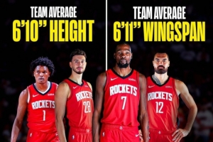 除了身高、臂展,火箭全隊(duì)平均體重約109公斤(241磅),同樣讓他們比他們將面對(duì)的大多數(shù)對(duì)手都更重、更硬。