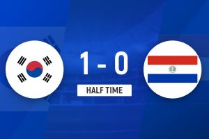 半場(chǎng)戰(zhàn)罷,韓國(guó)暫1-0巴拉圭。