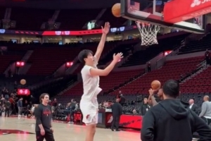體育資訊10月15日訊 今日季前賽開拓者對(duì)陣勇士,賽前斯普利帶領(lǐng)楊瀚森和克林根訓(xùn)練。
