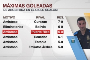 體育資訊10月15日訊 阿根廷隊友誼賽6-0大勝波多黎各,根據(jù)統(tǒng)計,6-0是斯卡洛尼執(zhí)教阿根廷隊的第二大比分勝利。